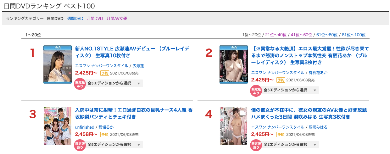 6月7日檔的作品宣布時有些朋友密我為什麼沒有安齋らら(安齋拉拉)?問題是好像也沒人說她會移防7日檔吧?甚至連接下來的19日檔也請大家不用太期待,只是我也沒想到在作品上架的黃金72小時會是有栖花あか(有栖花緋)先贏了兩天才被広瀬蓮超車⋯