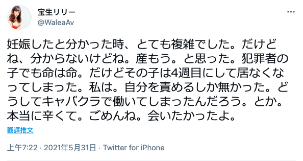 小孩當然是性侵害者的,宝生說也曾想過要把他生下來,但無奈自己的工作太糟身體也太差,陪酒沒多久小孩就流掉了:
