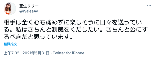 所以,她好痛,自責為什麼沒留住小孩;她好恨,因為性侵她的壞蛋至今仍逍遙法外,歌照唱舞照跳過著快樂的日子,宝生リリー(寶生莉莉)咬牙切齒,要把他公諸於世接受法律的制裁〜