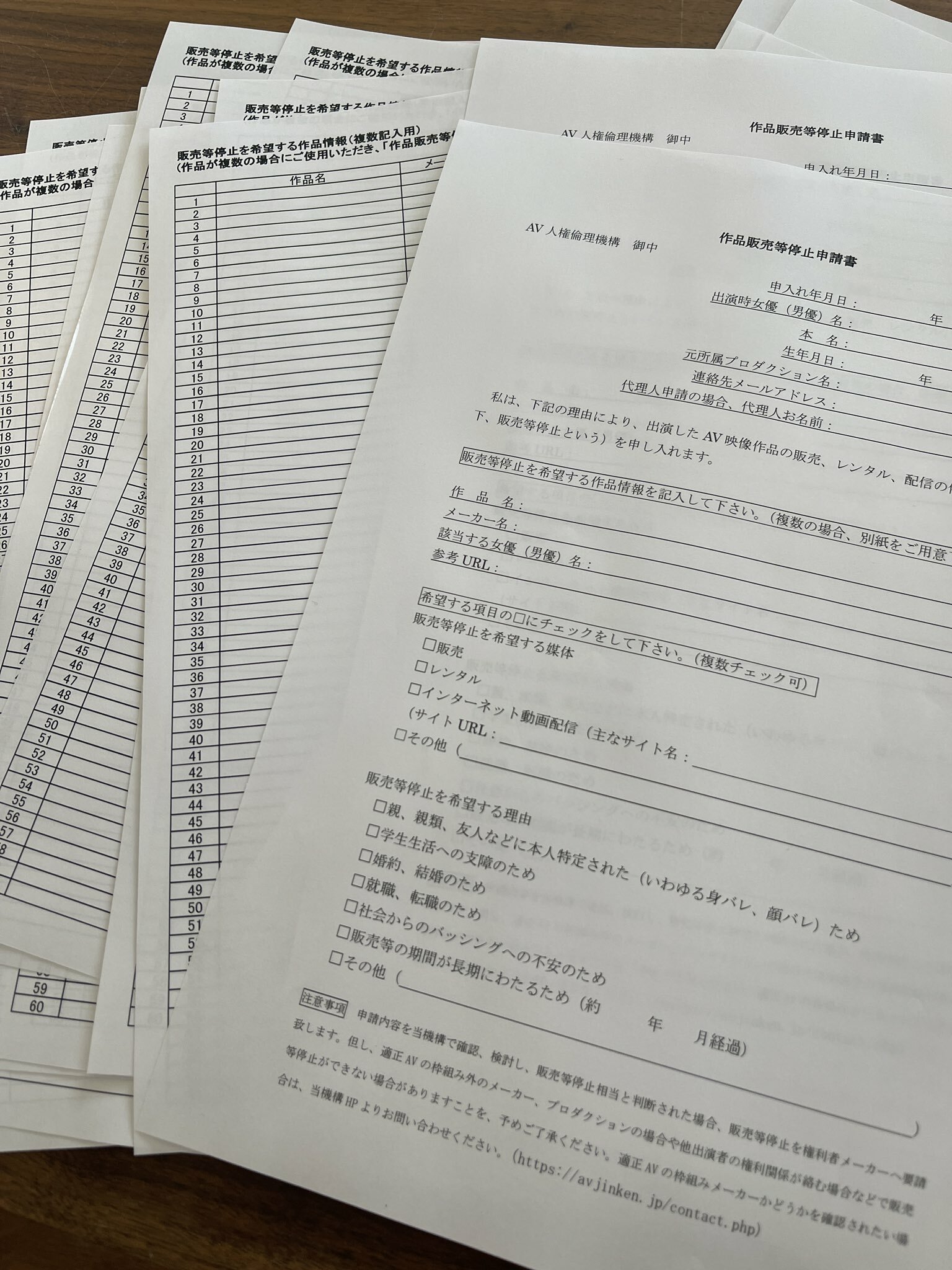 但我覺得好麻煩喔,沒看到申請書不知道,看了才曉得原來作品要自己列出來,像星美りか(星美梨香)這種業界的女優最多就辛苦點去待過的片商把作品抄下來,但如果是像波多野結衣這樣拍了超過2000片的女優呢?或是素人企劃拍很多,作品大多不具名然後又退出事務所不記得自己拍過什麼片子的女優又該怎麼辦?