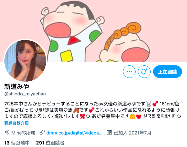 當然啦,當大家知道新道みや(新道美夜)不是佐竹のん乃(佐竹音乃)那負面效應會很強烈,不過有趣的是新道竟然有了twitter也亮出經紀公司Mine’s的招牌⋯