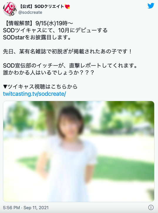 9月15日,這位神秘人物會在SOD的網路直播揭曉身分!