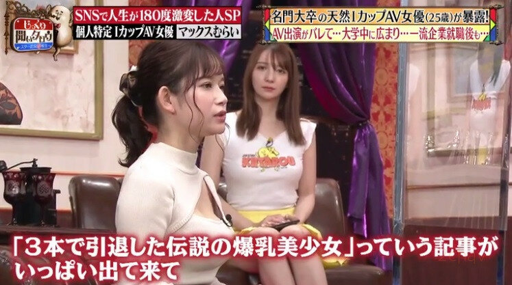 所以說現在AV女優要防止身分曝光幾乎是不可能,就算只拍了3片但拍AV的事仍然從大學跟著她進入職場,最後終於讓她AV復活ー不過話說回來,這種讓女優暢所欲言、把自己故事講出來的節目是很吸睛,但女優講出來的是事實還是人家寫好的劇本?以桃園怜奈來說,她風俗的那一段完全被省略掉了,這也讓我好奇是那段資歷不重要、還是不適合講、又或者整個節目講的東西都要打個問號?