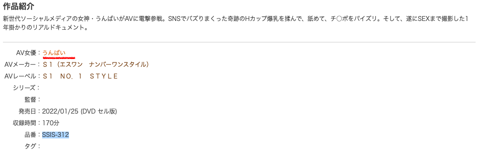 如果不是臨時插隊(其實AV界的做事真沒你想像的仔細,也不能排除這是高層突然下的指令),那就是這位うんぱい(Unpai)被認為很重要很重要,重要到必須要在年假同業都在休假的時候突襲宣傳ー而這就和她的身分息息相關,這位新人究竟有多偉大呢?