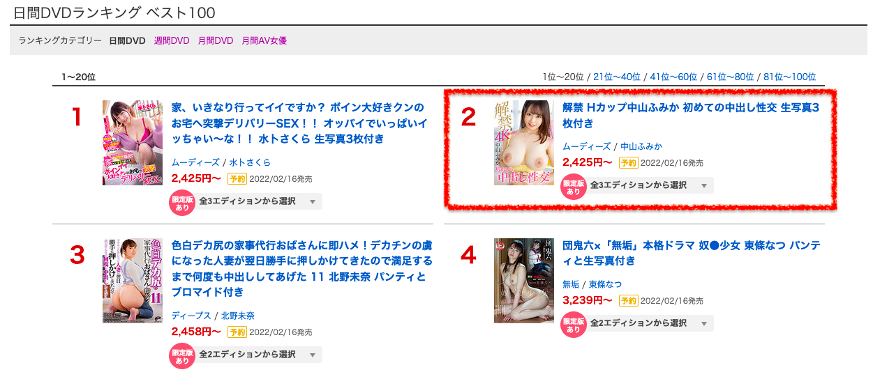 首先,中出し解禁有沒有用?當然有用,中山ふみか(中山文香)今天的預約成績是第2名,在Moodyz的專屬女優中只輸給了「水卜さくら(水卜櫻)」,水卜さくら(水卜櫻)已經告訴我們只要能好好發片她就是業界最強的女優之一,但其他呢?