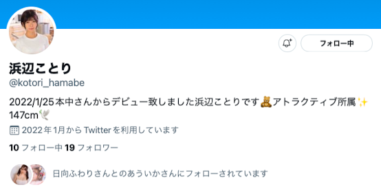 身為本中在2022年推出的新人,浜辺ことり(濱邊小鳥)是蠻特別的一位,你說她不重要嘛還真不重要,因為4位新人只有她在首頁沒有Banner,但和其他同時出道的女優她卻好像又有點重要,因為她是有twitter、亮出事務所招牌的新人: