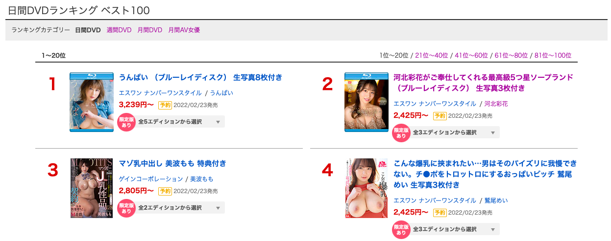 答案是很好,非常好,超級好,9999円(台幣2500元)的豪華特典組瞬間秒殺,在日間排行榜也拿下了第一(藍光)和第八(DVD)的好成績⋯