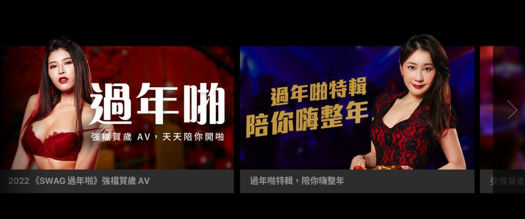 不只是這四支感謝祭,SWAG還有針對過年準備特別企劃,像是尾牙聚餐送主管回家(JSBY-0109,演出者一樣是小婕@hotbabegirl),老公打麻將把我輸掉(RQ-0005,演出的是@feifeibebe)、連續高潮中大樂透(XHX-0018,Swagger是@wanobaby)、到朋友家串門子拜年(TQ-00029,演出的是@carolinebb)以及組合技的初二老婆回娘家,隔壁鄰居人妻來拜年(LJ-0015以及DMX-007,是hotbabegirl以及lalasexy的共演),新春佳節,SWAG大爆發,希望大家也一起跟著炸裂〜