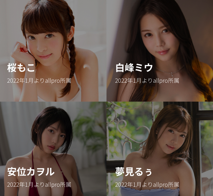 昨天和大家介紹七瀬アリス(七瀨愛麗絲)更換事務所為AllPro的消息,馬上就有人提醒我了,為什麼沒有報導桜もこ(櫻萌子)、白峰ミウ(白峰美羽)、安位カヲル(安位薰)和夢見るぅ(夢見露)也到了這家經紀公司的消息?