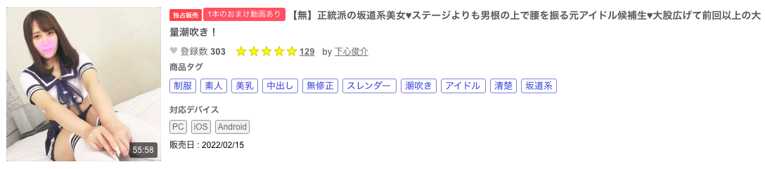 當然有的,真的要寫的話一天一篇,要我寫一個禮拜都沒問題,首先就來看演出「【無】正統派の坂道系美女♥ステージよりも男根の上で腰を振る元アイドル候補生♥大股広げて前回以上の大量潮吹き!」這支作品的學生妹吧: