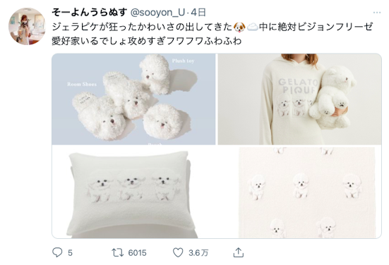 沒有發文,她只對三篇推文點了讚:兩篇是來自Fashion Press這個帳號的商品推送(一個是冰棒,一個是ちいかわ飯店的菜單介紹),剩下一篇則是ジェラートピケ(gelato pique)這個牌子最新的商品介紹,是狗狗造型的拖鞋和枕頭,剩下的就是去年大家祝她生日快樂的發文,她沒刪掉,然後,沒了。