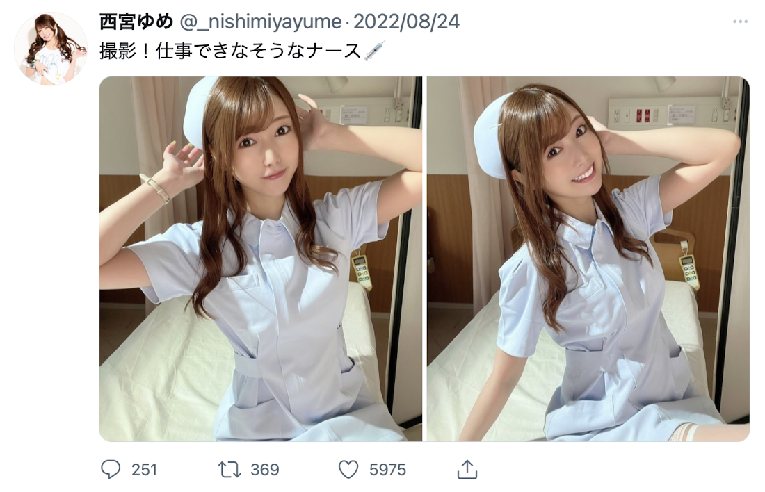 沒錯,不只三上悠亜,西宮ゆめ(西宮夢)也演出護士片!