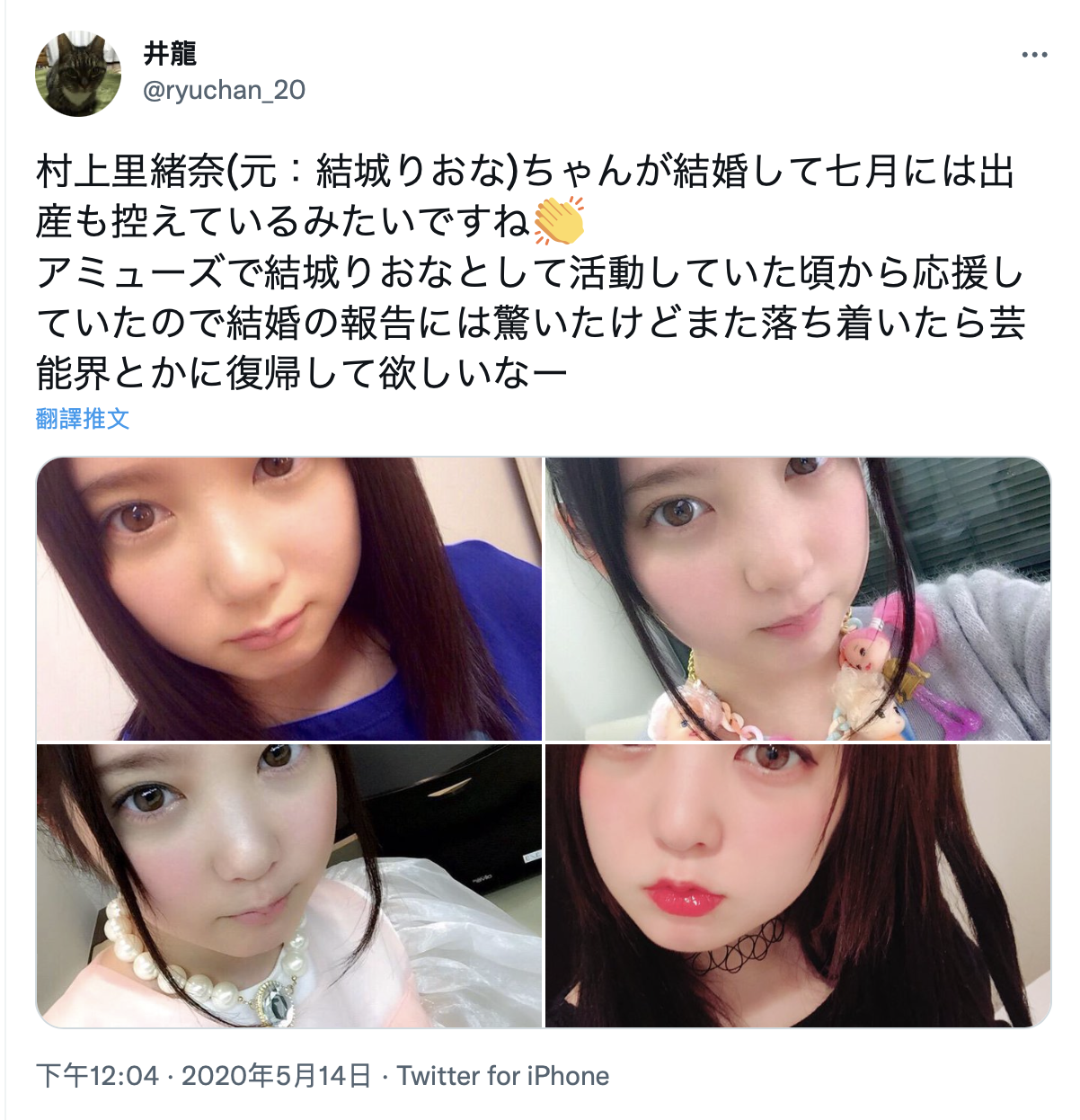 從日本網路的八卦來看,關鍵是在2020年,有粉絲爆料說改名叫「村上里緒奈」的她要在七月結婚生子,叫人大吃一驚,不過他仍然希望將來等到孩子生了、一切都穩定下來後村上里緒奈能再回到演藝圈,畢竟他可是從這位女星一出道就支持到現在啊〜