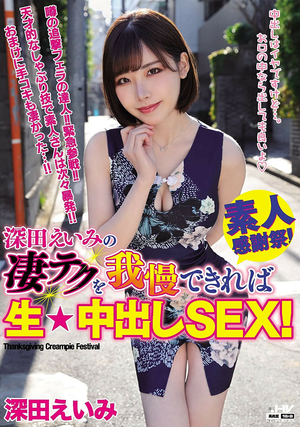 而且與與差不多等級的女優如「三上悠亜」不同,深田えいみ(深田詠美)其實蠻喜歡聊AV的:這次受訪時不但聊到拍亞馬遜體位拍得超累還有喜歡在騎乘位上玩弄男優的奶頭,甚至連怎麼玩(用拇指和中指把乳暈撐開再用食指玩弄)都講得非常詳細;私底下她也很愛聊拍片的細節,比方說她提到自己在演出的時候會刻意加大反應,尤其會在「聲音」上做表演,至於最推薦的作品嘛,VR是「顔面舐め回し!耳舐めほじり!チ●ポ咥えまくり!いつでもどこでもフェラチオご奉仕してくれる淫乱おしゃぶりメイド」、一般作品則是「深田えいみの凄テクを我慢できれば生★中出しSEX!」: