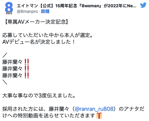 接下來,就看藤井蘭々會在哪一家片商再出道當專屬女優囉。