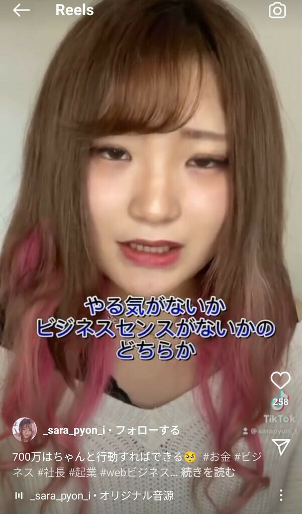 這人是之前的網路發燒人物,2001年1月7日出生的她和桜木花道一樣出身自神奈川縣,目前住在東京,是東洋大学社会学部社会福祉学科的大學生,該科系的偏差值為52.5,也就是說這位女大學生離「學霸」兩字的距離很遠很遠。而這位さらぴょん之所以有名是因為家裡很有錢(從小到大讀私校,學費至少花了2000萬日幣)的她成立了一家名為HOPE的網路行銷公司,然後在TikTok上狂言「年收入800万円以下的人都廢物啦」: