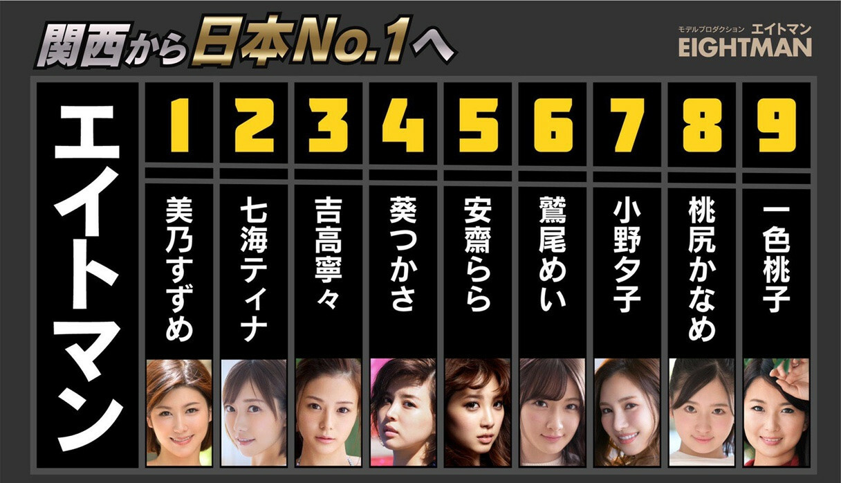 我再說一次,AV界沒有規定不能挖角,但過去很少有事務所靠挖角壯大自己,現在8MAN就辦到了:除了上述四位女優以外,安齋らら(安齋拉拉)是從T-Powers鳳還巢的,鷲尾めい(鷲尾芽衣)是從Arrows帶槍投靠的,還有小野夕子及天国るる(天國露露)是引退後沉寂了一陣子然後成了8MAN的人,這些人都是AV界等級非常高的女優,說是各事務所的招牌也不為過,結果被8MAN挖走後就出現了以下兩個效應: