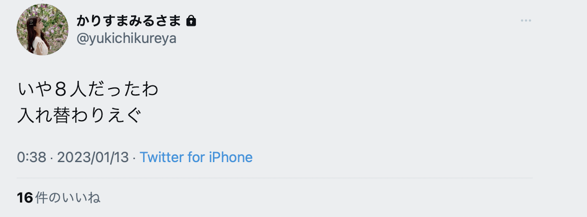 6)汐世ー發片停在12月,後來更換事務所為8MAN改名為凪ひかる(凪光),結果twitter已經快兩個月沒動靜⋯