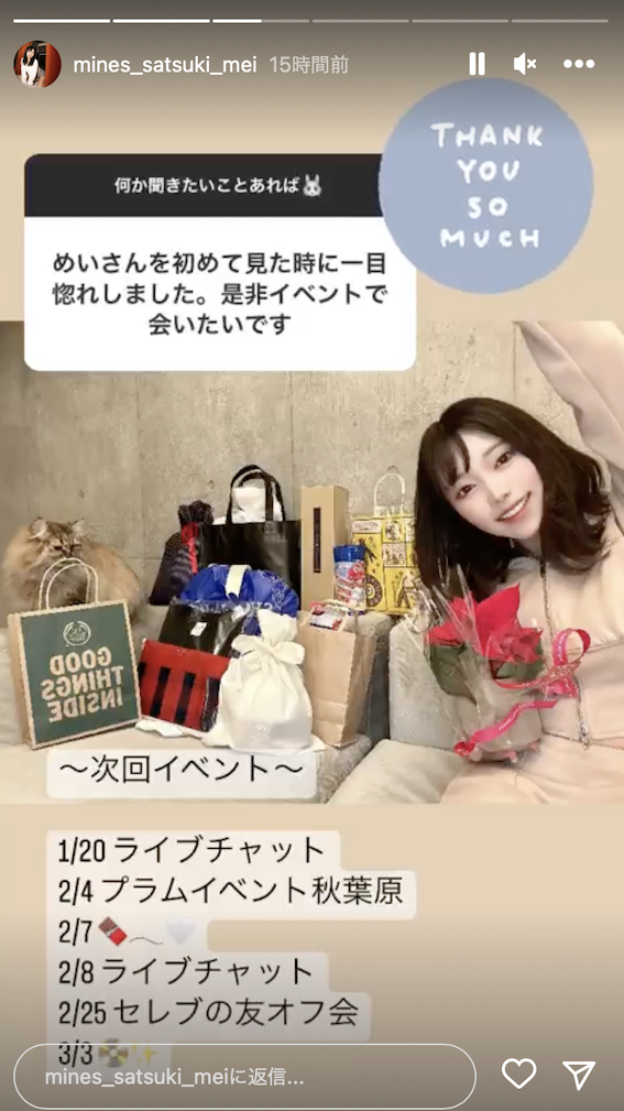 我個人偏向前者,雖然不比全盛時期,但さつき芽衣(沙月芽衣)還是有片商願意給Offer的,所以應該就是累了乏了臣妾不想做了;至於休業後要幹嘛呢?說自己身體沒問題的さつき芽衣(沙月芽衣)除了會繼續在全員AV女優的酒店「紅龍(レッドドラコン,Reddragon)」上班外她也說了,片子會發到年底(哇靠現在1月就確定可以發到年底,可以證明不是沒片拍),然後三月底前都還有活動,只是都是在東京都內舉辦: