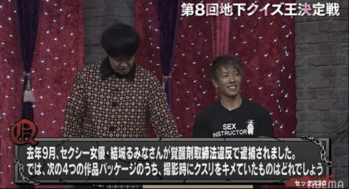 當然不是因為她拍片的表現很精采,而是因為她之前持毒被捕的醜聞:在網路電視節目「地下クイズ王決定戦!!」就有這麼一個題目ー
