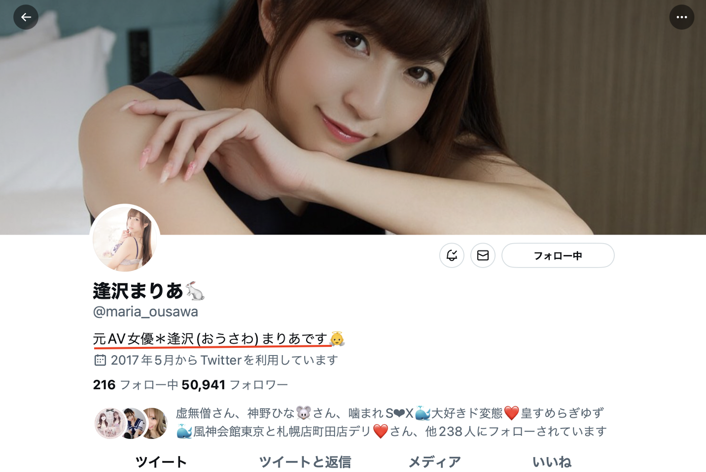 她並沒有正面答覆這個問題,不過她悄悄地改了twitter的自我介紹,可以看到現在她是元AV女優(原 AV女優)了⋯