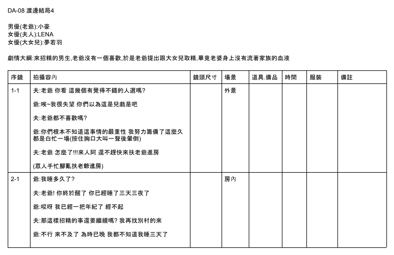 Q:我與渡邊哥的結緣是「銀家大院」這支作品,當初我就很好奇渡邊哥怎麼會有銀家大院的構想?男女優是怎麼選出來的?