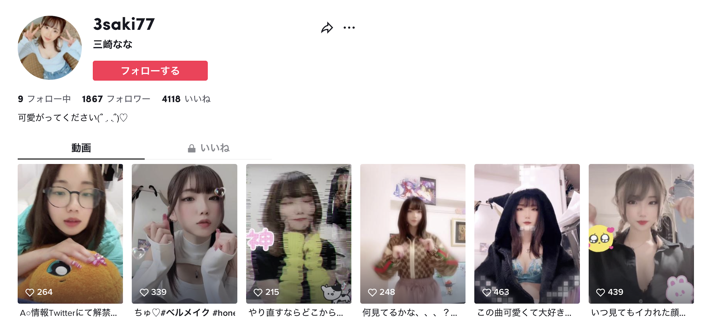 要找到三崎なな(三崎奈奈)的Tiktok(https://www.tiktok.com/@3saki77)並不難,不過和Moodyz講的不太一樣,這個帳號到目前為止還不到2000人追蹤,我是覺得要唬爛不必說她是個2.7萬個追蹤的小網紅,所以三崎なな(三崎奈奈)應該有其他帳號吧⋯