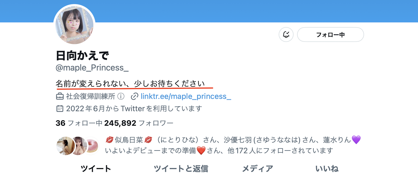 影片裡她講得蠻清楚的,新經紀公司是和神木麗同一間的「Funstar」,名字則是因為她很喜歡「日向」這個姓所以只是改了名字變成「日向陽葵」,由於目前(2023/4/2 PM20:00)twitter還沒有辦法改名字,所以還是維持著原來的名字: