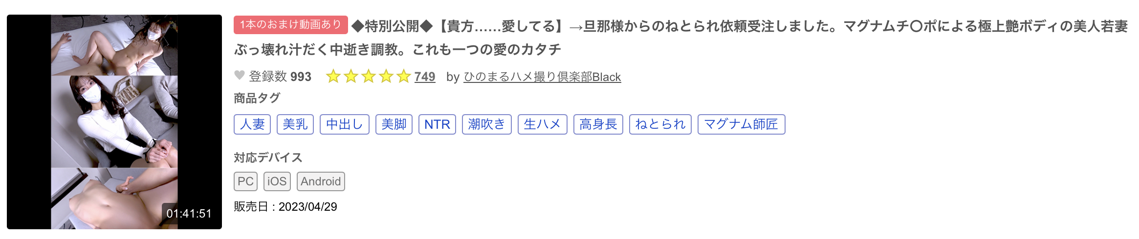 那就是FC2-PPV-3283835的「◆特別公開◆【貴方……愛してる】→旦那様からのねとられ依頼受注しました。マグナムチ〇ポによる極上艶ボディの美人若妻ぶっ壊れ汁だく中逝き調教。これも一つの愛のカタチ」以及FC2-PPV-3283836的「◆特別公開◆【貴方……愛してる】【鬼イカせ】マグナムねとられセックスを堪能した後は極上艶ボディに鬼イカせでさらなる強制快楽執行」,沒錯,從番號就知道,是無碼片!